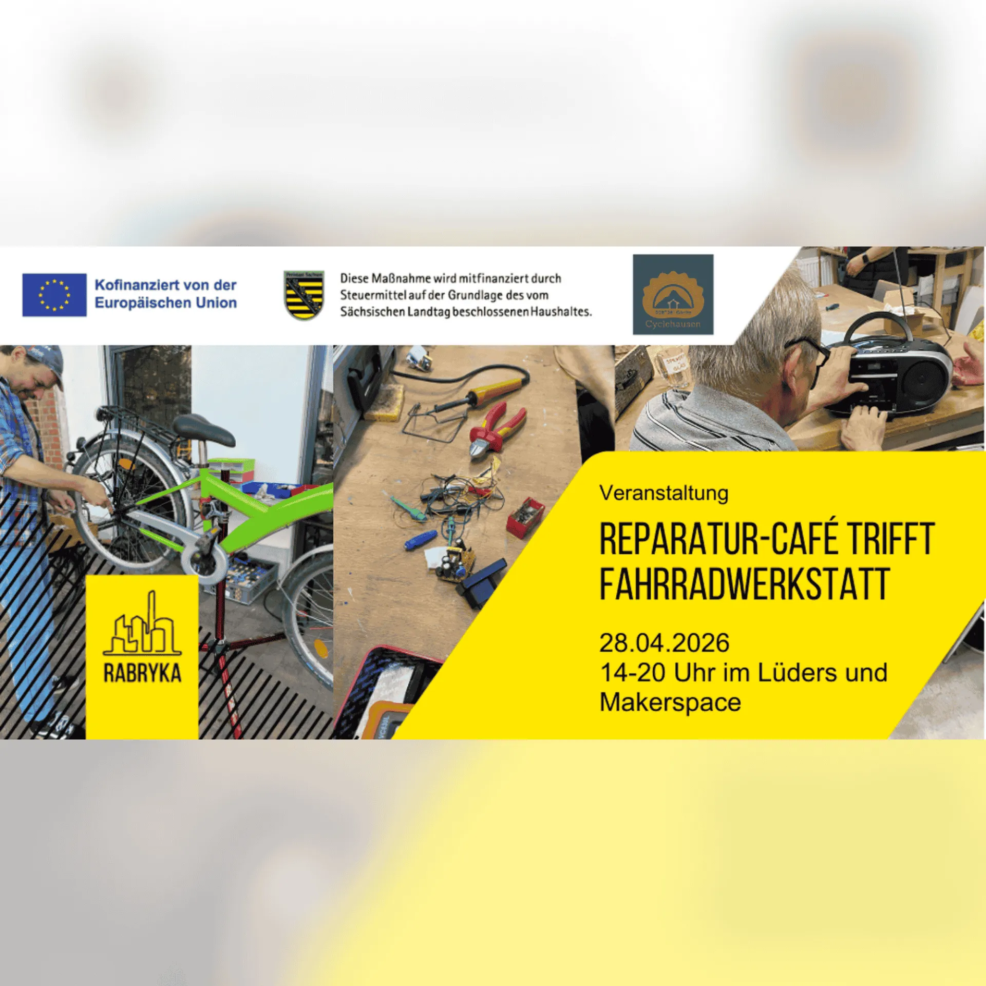 Kommt vorbei, bringt eure Räder, Geräte oder Ideen mit – wir sind gespannt, was wir zusammen wieder frisch machen können!